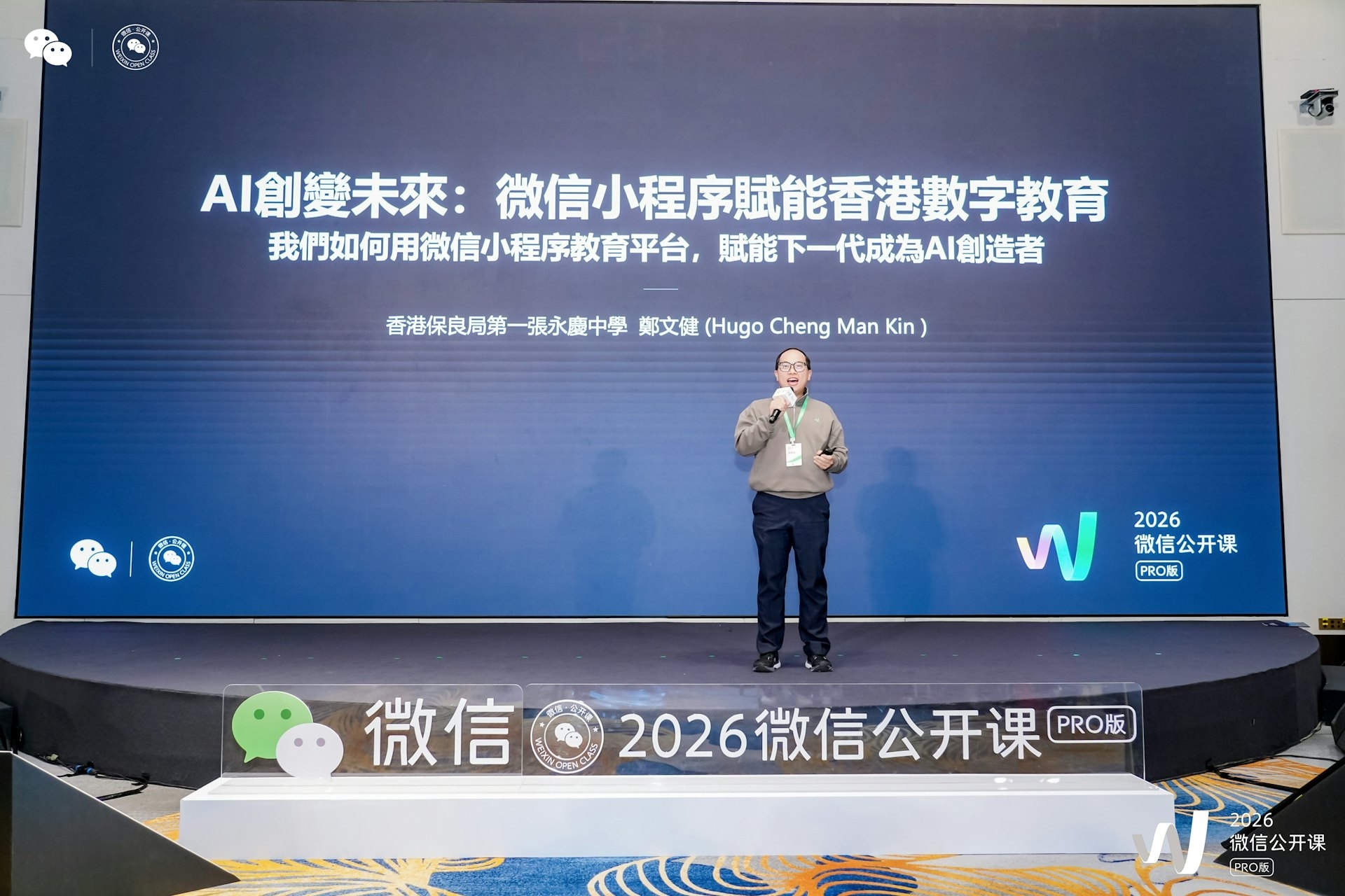 2026年1月15日於廣州廣交會展館盛大舉行的年度科技盛會「2026微信公開課PRO」上,來自香港保良局第一張永慶中學的鄭文健老師,作為教育專場的特邀演講嘉賓,向全國的教育夥伴分享了香港利用微信小程序教育平台教授人工智能(AI)的實踐經驗,並同場發佈了首套結合AI與微信小程序開發的實體教材——《AI人工智能賦能:微信小程序開發實戰》。